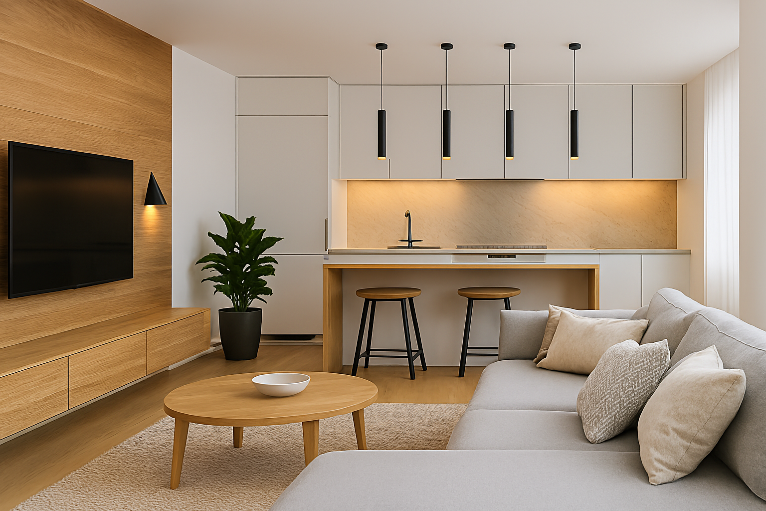 - Full-space redesigns: kitchens, living rooms, bedrooms
