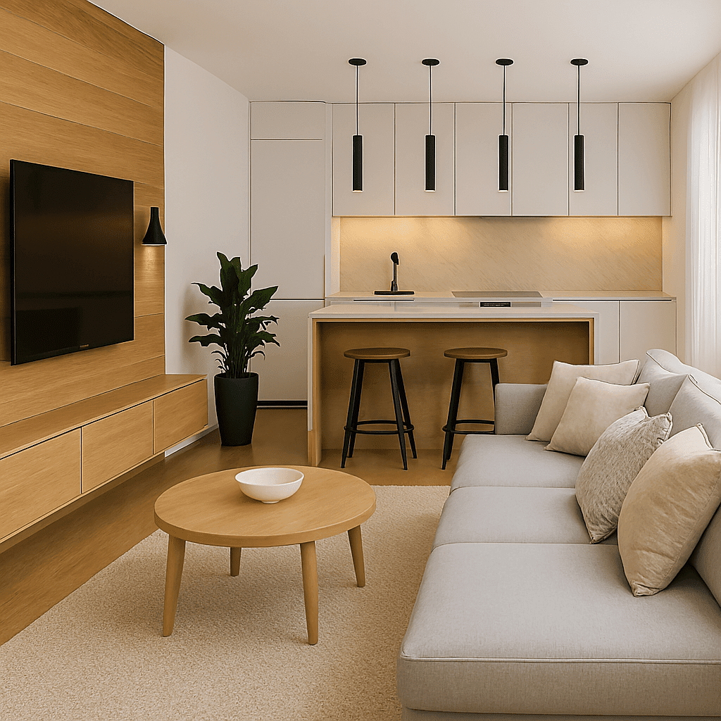 - Full-space redesigns: kitchens, living rooms, bedrooms